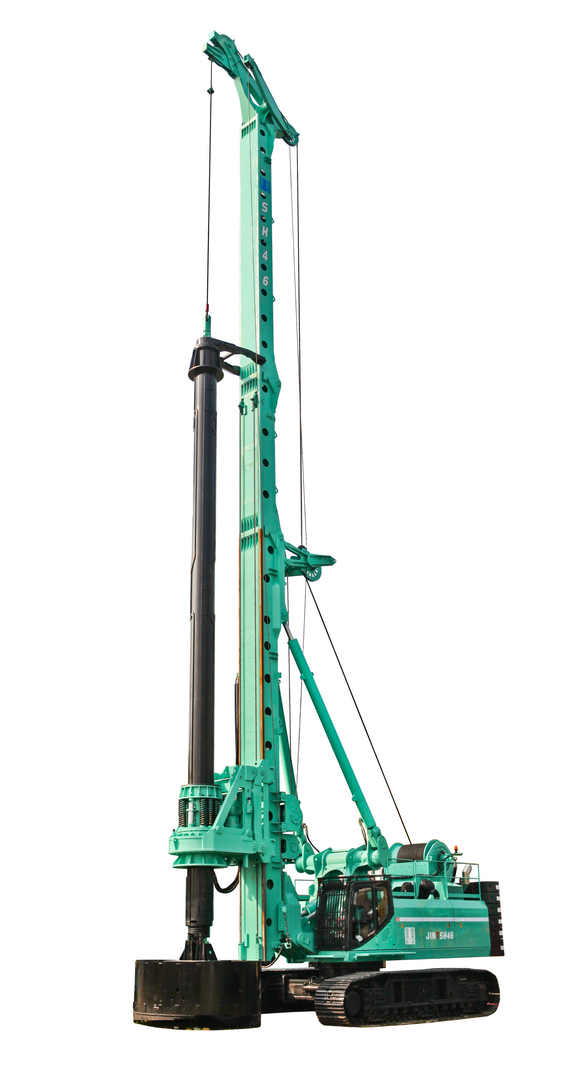SH46多功能鉆機(jī)是我公司應(yīng)對市場需求,為解決超大超深樁基礎(chǔ)施工、復(fù)雜地層施工難等問題,最新推出的一款大三角結(jié)構(gòu)的樁工機(jī)械產(chǎn)品。SH46采用自主研發(fā)設(shè)計的旋挖鉆機(jī)專用底盤,配置進(jìn)口CAT發(fā)動機(jī)及國際一流品牌關(guān)鍵零部件,融合了現(xiàn)代液壓樁工機(jī)械新技術(shù)和新工藝,整機(jī)優(yōu)化布局,低重心設(shè)計,穩(wěn)定性好。同時SH46具有超大加壓能力,入巖效率高,是各類超深超大樁基礎(chǔ)工程施工的首選設(shè)備。